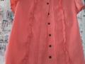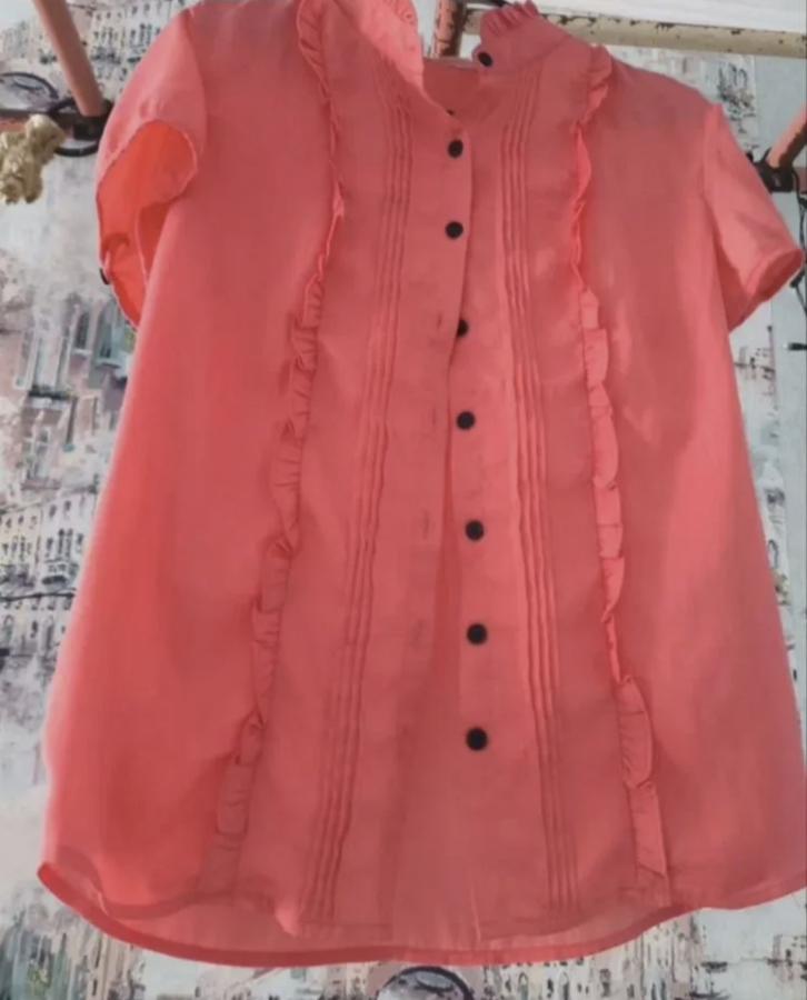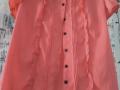Женская блузка с рюшами кораллового цвета от Gloria Jeans. Размер 46. Короткий рукав. Состояние нового. На пуговицах. Полуобхват груди 49 см, длина 58 см.